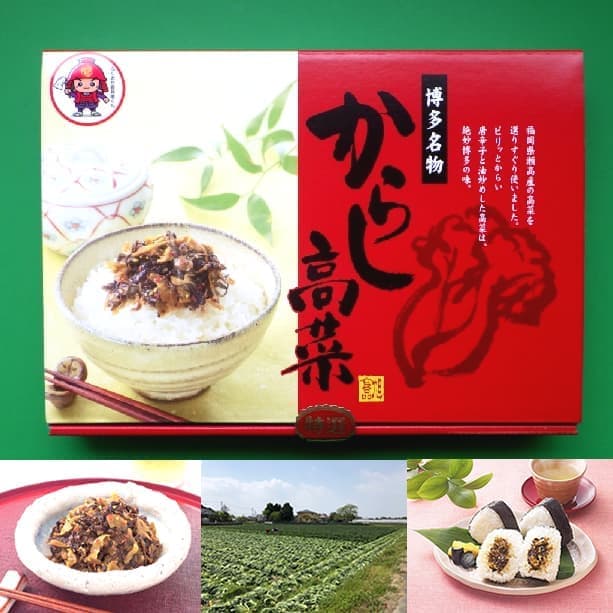 天日干しにより素材の旨味を凝縮した九州産の高菜を昔ながらの漬込み製法にてウコンと食塩を加え一株一株丁寧に漬込みじっくり乳酸発酵させた瀬高たかな漬を使用し、特製調味液を加え直火大釜にて油炒めした商品です。